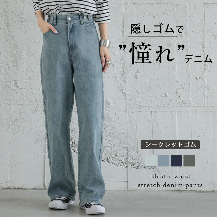 【半額クーポン利用で2990円】ウエストゴム ストレッチデニム 隠しゴム ストレートライン デニムパンツ ボトムス シンプル レディース 春夏【lstp408-359】【予約販売:4月10日入荷予定順次発送】【送料無料】メ込2