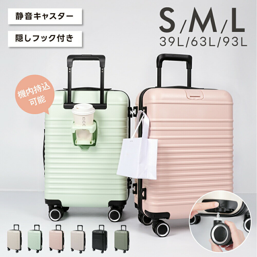 \TIME SALE 80%OFFで2,378円/スーツケース 機内持ち込み 耐衝撃 隠しフック付 キャリーバッグ SMLサイズ39L/63L/93L キャスター取り外し 多収納ポケット 360度回転 静音 カップホルダー付 軽量設計 トランク ダブルキャスター 超軽量 大容量 mzk-sc0031