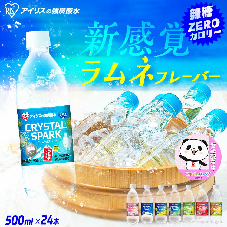 炭酸水 500ml 送料無料 24本 強炭酸水 アイリスオーヤマ クリスタルスパーク レモン ラムネ ピーチ サイダー フレーバー 無糖 カロリーゼロ ソーダ スパークリング 割り材 箱買い まとめ買い 【AS】