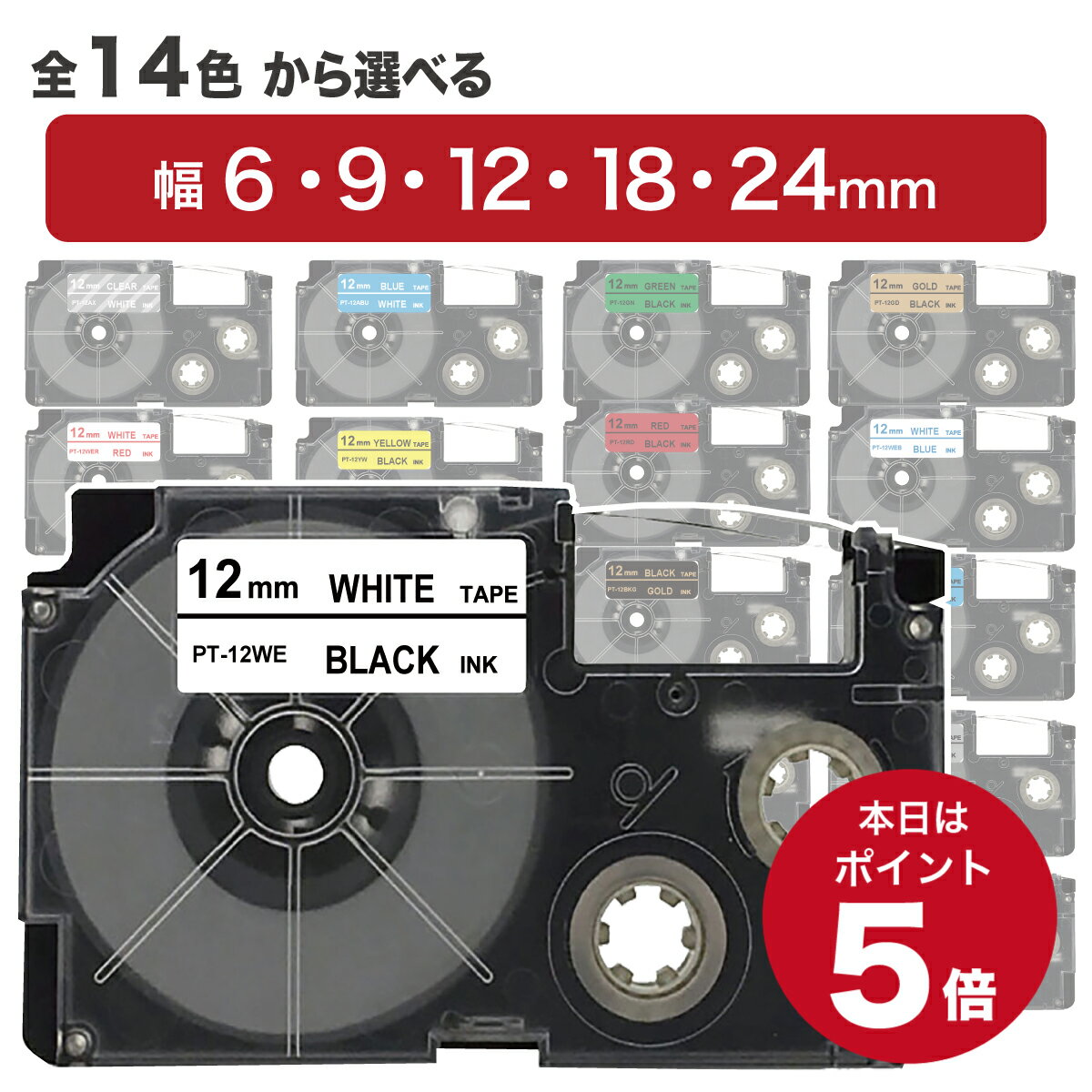 【P10倍&レビューを書いて特典GET】選べる5個 テプラ テープ テプラpro テープ 12mm 白 透明 カートリッジ 12mm 9mm 6mm 4mm 強粘着 互換 フリーチョイス(自由選択) 全53色 キングジム ラベルライター SR-MK1 SR-R7900P SR-R680 SR5900P SR-R2500P SR-MK1 SR-GL1 SR170