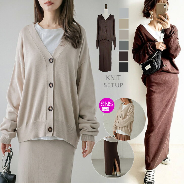 【半額クーポン対象】【インスタグラマー@ema.217さん愛用!】ニット セットアップ レディース ニット 長袖 カーディガン ニットスカート 2025春夏 【lgww-at2819】【即納:1-5営業日】【送料無料】60込