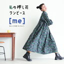 【4月上旬より順次出荷】[me] 私の押し花ワンピース M/L/LL/3L/4L/5Lサイズ レディース/シャツワンピース/ロング/フレア/Aライン/長袖/綿/コットン/花柄/北欧風