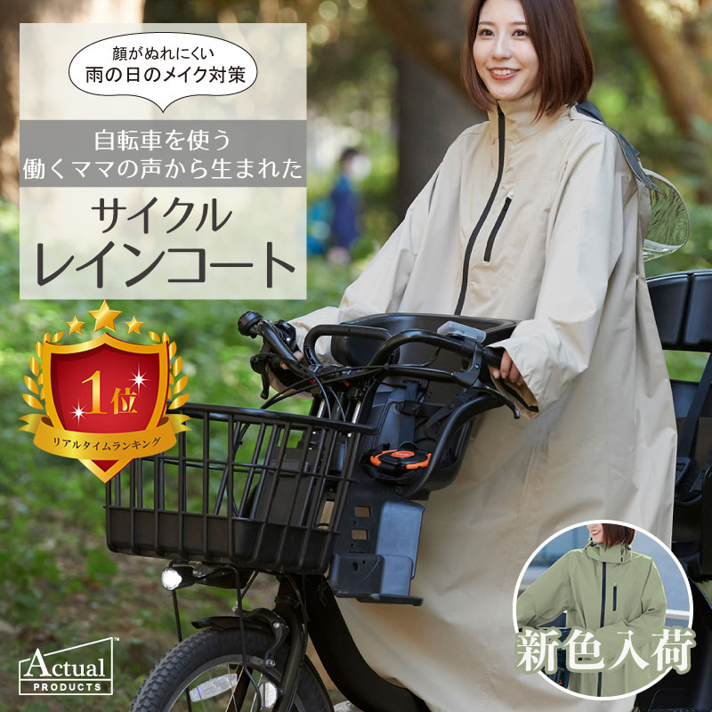 サイクルレインコート 防水 カッパ 自転車 通学 リュック対応 カーキ ベージュ ママ レインコート レディース 送迎 お迎え ツバ付き メンズ 鞄 女性 メンズ 通勤 シンプル 合羽 梅雨 通学 学生 高校生 【レビュー特典】