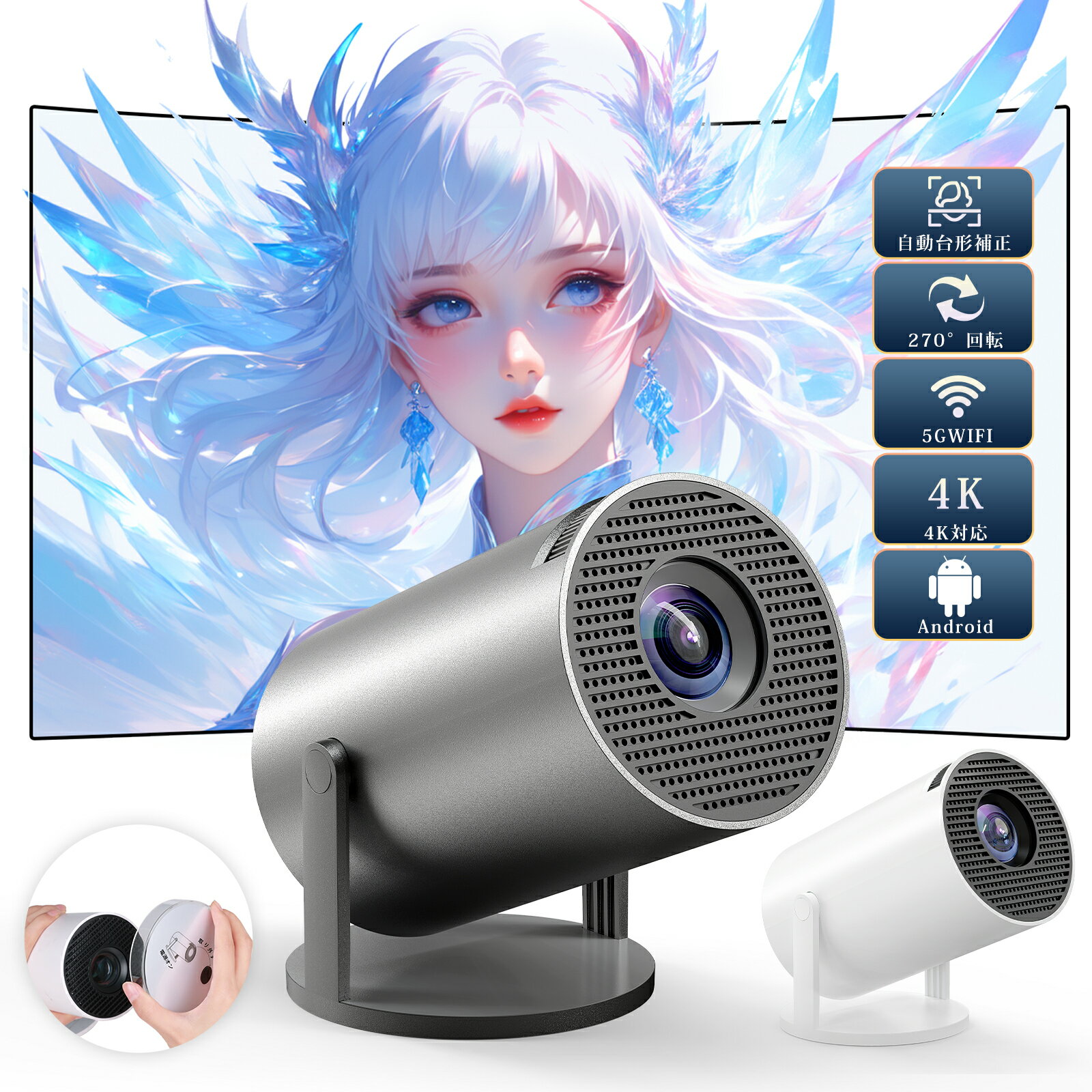 \当日限定10%クーポン/プロジェクター 小型 家庭用 4K対応 天井投影 スマホと繋げる android搭載 210°回転 Netflix/YouTubb Android TV 1080P ホームシアター 5G wi-fi 6 天井 ホームシアター 子供 壁 コンパクト 無線接続 Bluetooth HDMIケーブル・リモコン付属