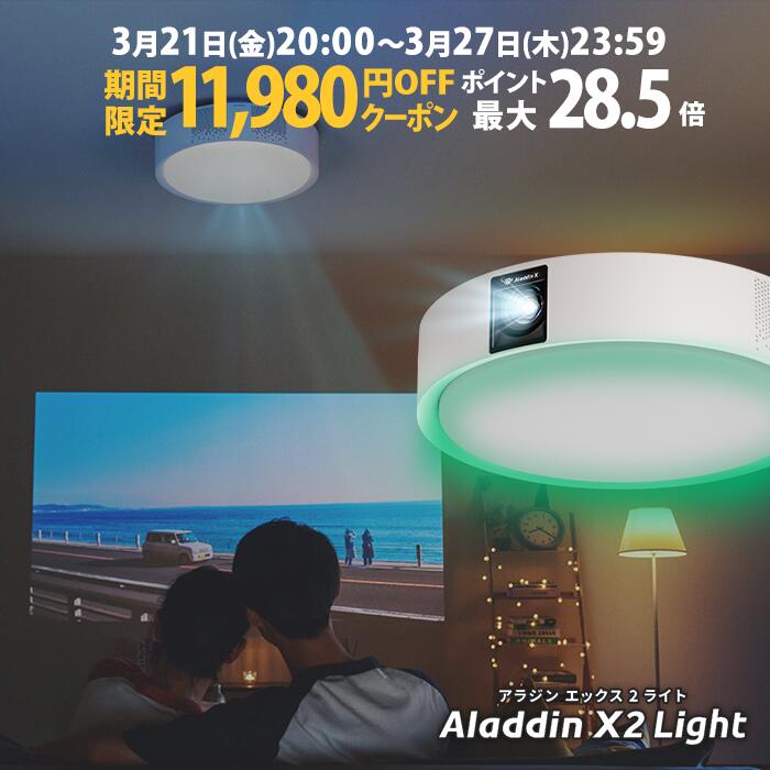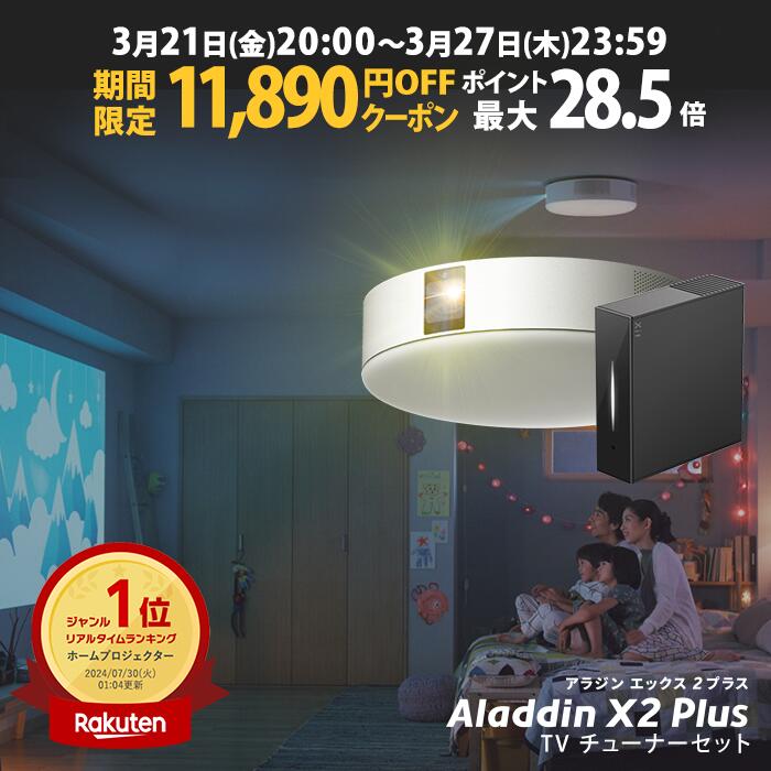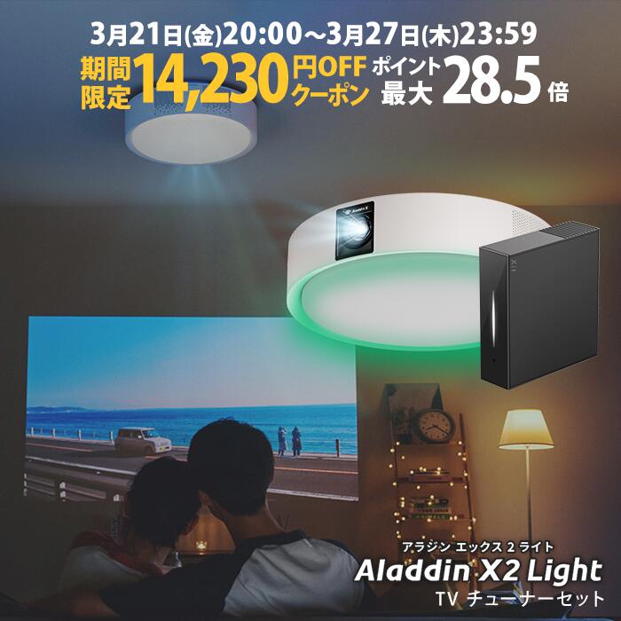 【期間限定11,890円OFFクーポン発行中】Aladdin X2 Plus 推奨テレビチューナーセット アラジン エックス2 プラス もう、テレビは不要 プロジェクター売上No.1 短焦点 LEDシーリングライト スピーカー フルHD 天井 照明 ホームシアター 映画 XIT-AIR120CW