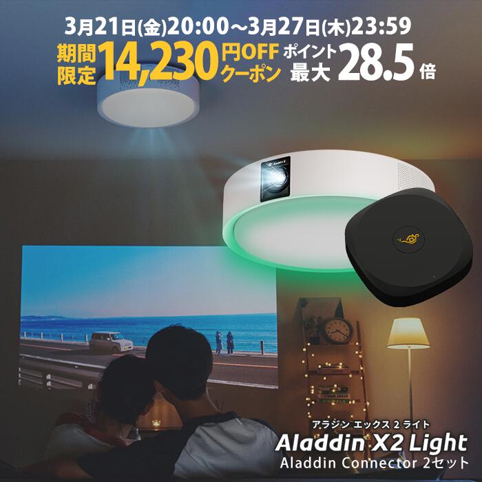 【期間限定14,230円OFFクーポン発行中】Aladdin X2 Light コネクター2セット 6畳でも100インチ 短焦点 700 ANSIルーメン LEDシーリングライト LEDムードライト スピーカー フルHD 天井 照明 ホームシアター 映画 テレビ bluetooth アラジン エックス2 ライト