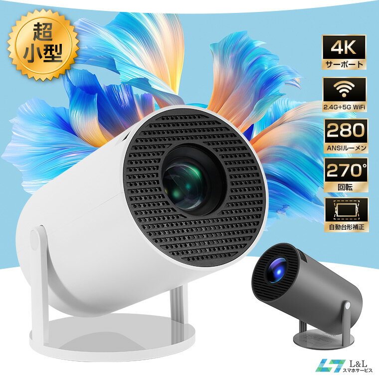 「新品発売4000円OFFクーポン&5倍P」プロジェクター 小型 自動台形補正 360°回転 高品質ホームプロジェクター 4K対応 Android 対応 Netflix/YouTube/HULU 家庭用 天井投影 スマホ ミラーリング ズーム機能 2.4&5G Wi-Fi モバイル/PS5/DVD/Switchなど対応 リモコン付き