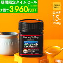 【28h限定クーポンで1個3948円 3個で1個3678円】マヌカハニー プレミアム UMF15+ はちみつ ハニーバレー MGO 512+ 250g UMF15 15+ 15 コンビニ受取り ニュージーランド 非加熱 無農薬 産地限定 高純度 モノフローラルマヌカハニー(単花蜜)