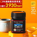 【3/21までクーポンで1個6680円 3個で1個6370円】マヌカハニー プレミアム UMF20+ はちみつ ハニーバレー MGO 829+ 250g UMF20 20+ 20 ギフト コンビニ受取り 非加熱 無農薬 産地限定 高純度 モノフローラルマヌカハニー(単花蜜)