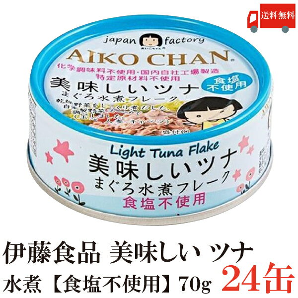 送料無料 伊藤食品 美味しいツナ まぐろ水煮【食塩不使用】 フレーク 70g ×24缶(ツナ缶 つな缶 国産 鮪 あいこちゃん)