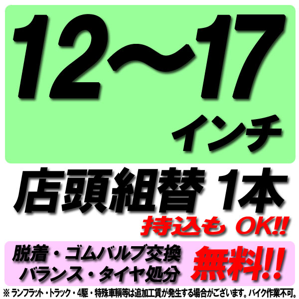 【来店専用】12〜17インチ タイヤ組替 1本 タイヤ交換 脱着・ゴムバルブ交換・バランス調整・タイヤ処分 コミコミ!