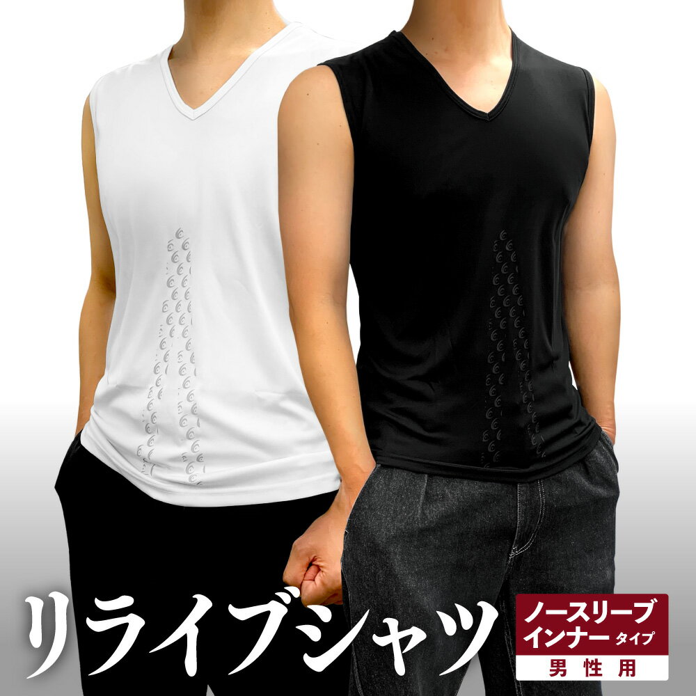 リライブシャツ インナー ノースリーブ メンズパワーシャツ リカバリーウェア 男性 インナーシャツ アンダーシャツ 普段着 作業着 介護服 作業服 パワースーツ Vネック ポリエステル 機能性tシャツ 機能性シャツ リカバリーウエア