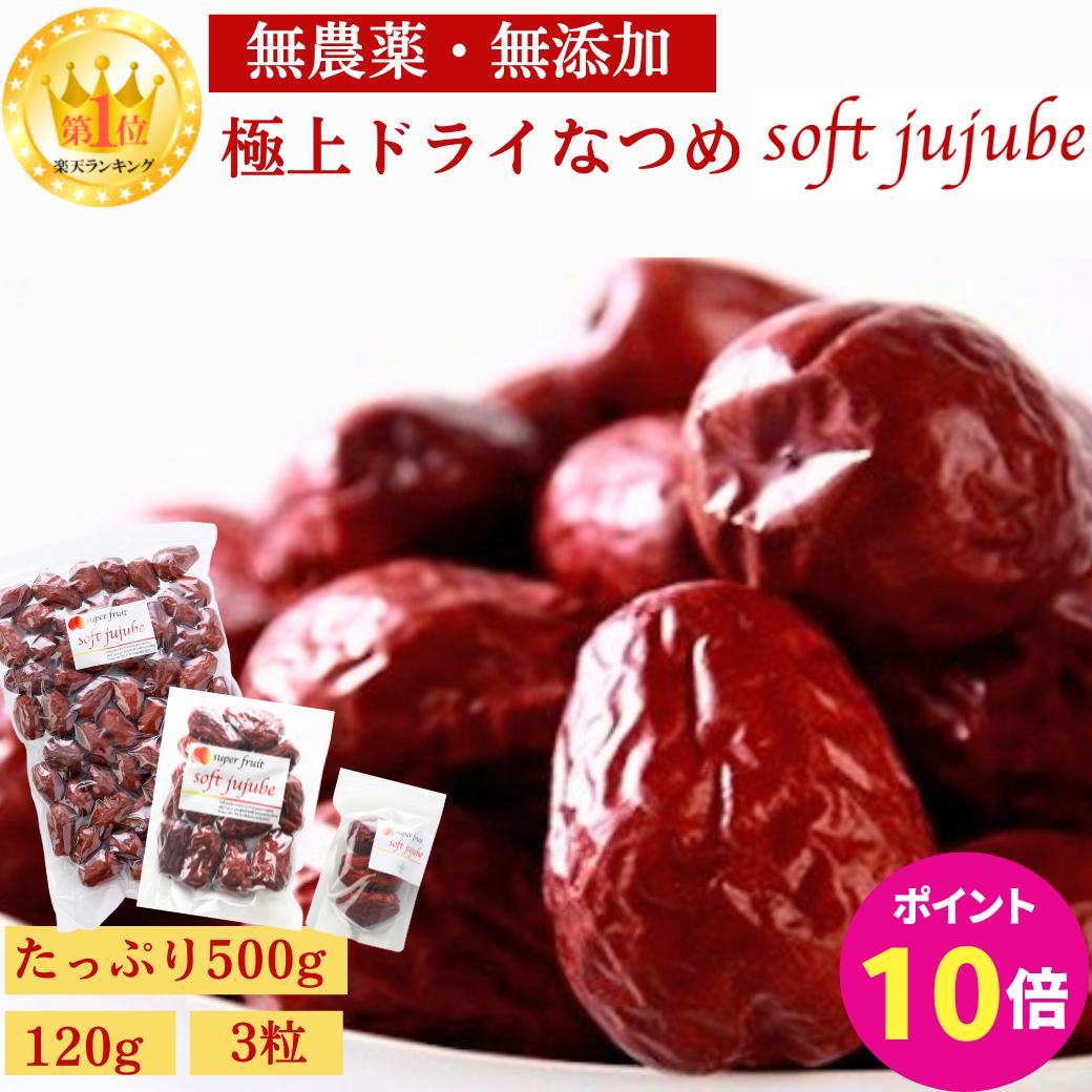 【最大2500円OFFクーポン配布中】極上 ドライ なつめ 500g 120g お試し3粒 ナツメ 無農薬 オーガニック 棗 ドライフルーツ ドライなつめ オーガニックなつめ 有機 乾燥なつめ ナツメの実 ナツメ茶 サムゲタン 薬膳 妊婦 鉄分 妊娠中 紅棗 SOFT JUJUBE
