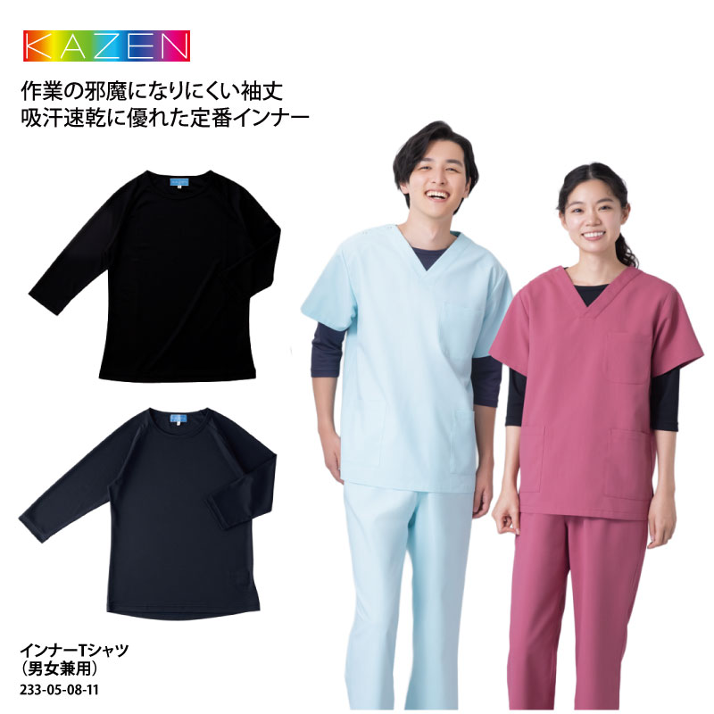 【楽天ランキング堂々の1位受賞】スクラブインナー カゼン 春夏 アンダーウェア 医療 男女兼用 黒 白 グレー7分袖 オールシーズン ドライ 吸汗速乾 快適 看護 介護 メディカル 重ね着 日焼け対策 クーラー対策 温度調節 233