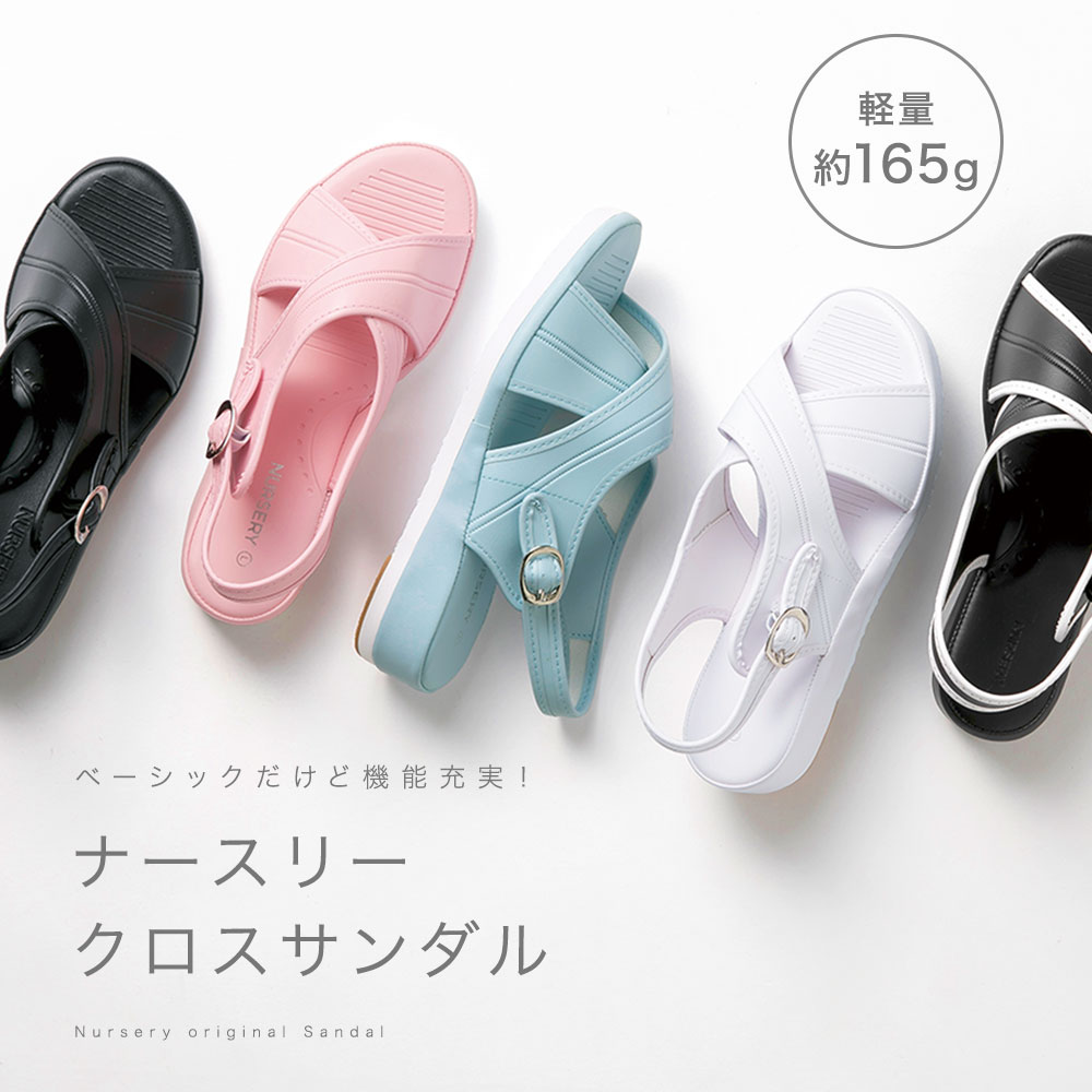 【送料無料】ナースリークロスサンダル(2E)【ナースサンダル 黒 白 医療 病院 看護師 歯科衛生士 オフィス 事務 疲れ ブラック 軽量 クッション 小さいサイズ ホワイト 大きいサイズ ナースリー 人気 おすすめ】8229