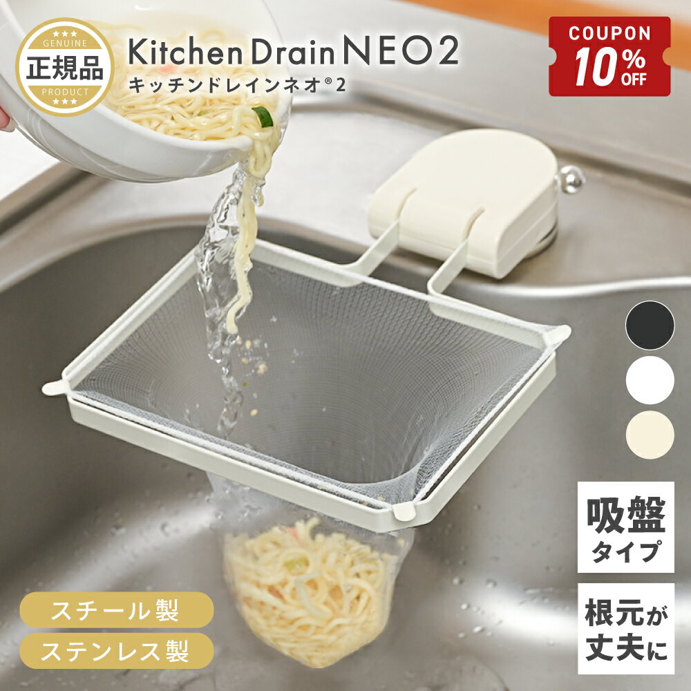 【3/21 20時~先着100枚!全品50%OFFクーポン】 \ 話題の新商品 / キッチンドレインネオ 2 三角コーナーいらず 浮かせる 本体 三角コーナー 折り畳み 生ゴミ キッチンドレイン 水切りネット 50枚付き ネット ホルダー シンク キッチン いらず おしゃれ 水切りラック