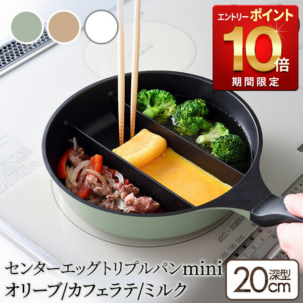 【オリーブ3/18入荷しました】仕切りフライパン グリーン ブラウン ホワイト 同時調理 時短 IH対応 ガス火対応 深型 ミニ コンパクト 茹でる フライパン 玉子焼き IH ih対応 ガス火 20cm【センターエッグトリプルパンmini オリーブ/カフェラテ/ミルク】