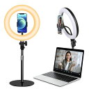 YARRASHOP LEDリングライト 女優ライト 撮影配信用ライト 10インチ 卓上 パソコン スマホ ライト オンライン WEB会議ライト 影がなし 10段調光 3色モード USB給電 スマホスタンド付 360°回転 金属制台座 安定性良い RING