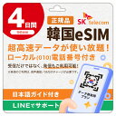 【SKTelecom公式認証】 韓国eSIM 4日間(96時間) 電話番号付き(発信可能・チャージ要) 楽天メッセージにてQRコード送信(順次発送) 有効期限/ご購入日より120日まで使用可能 お急ぎの方(LINE相談受付中) 現地空港サポート(SKTelecomローミングセンター) 韓国SIM