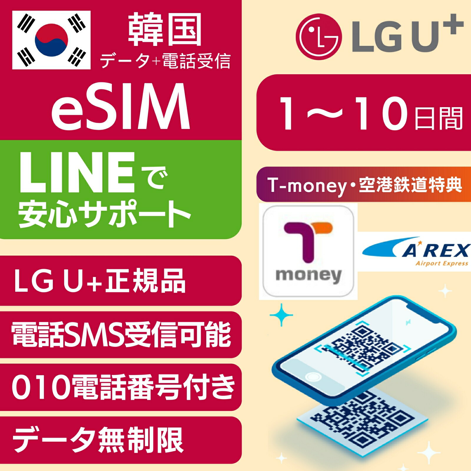 【公式 G-DRAGON ステッカー T-money 引換券配布中】【010 電話番号付き】即日送付 LG U+ 正規品 韓国 eSIM 【AREX 空港鉄道 リムジンバス 割引特典】3日間 4日間 5日間 7日間 SMS 音声 電話受信可能 韓国旅行 データ無制限 ※ご利用開始有効期限:12月31日