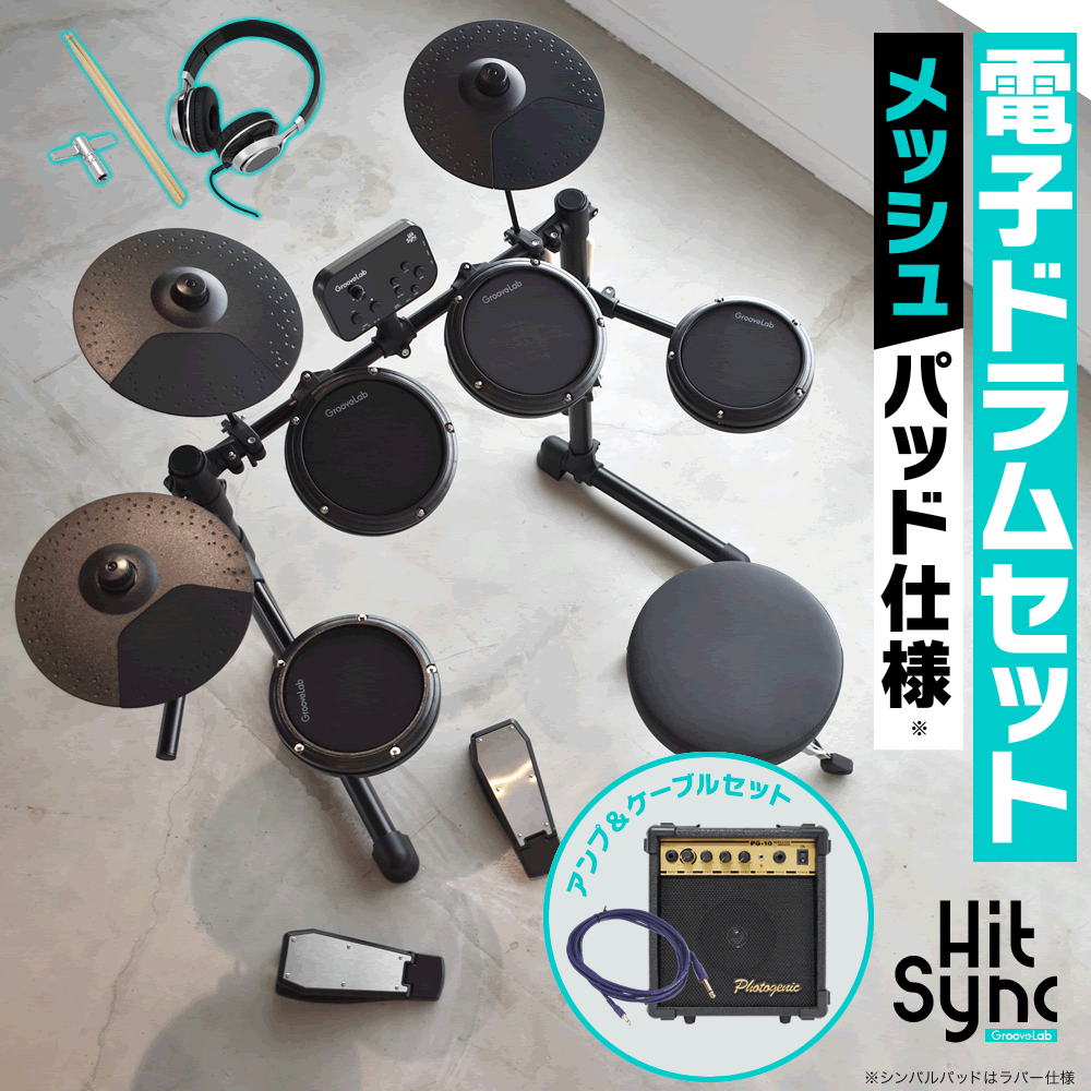 電子ドラム セット メッシュパッド仕様 GrooveLab HitSync GLHS-01 イス、ヘッドフォン、電子ドラム【折りたたみ 防音 静音 初心者 入門 吹奏楽 部活 コンパクト メッシュ デジタル ドラム GLHS01】【5と0のつく日は当店ポイント5倍!】