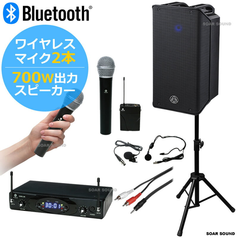 【楽天ランキング1位入賞】スピーカーセット 拡声器 ワイヤレスマイク2本 Bluetooth 5.0対応 高低音強化機能搭載(黒)