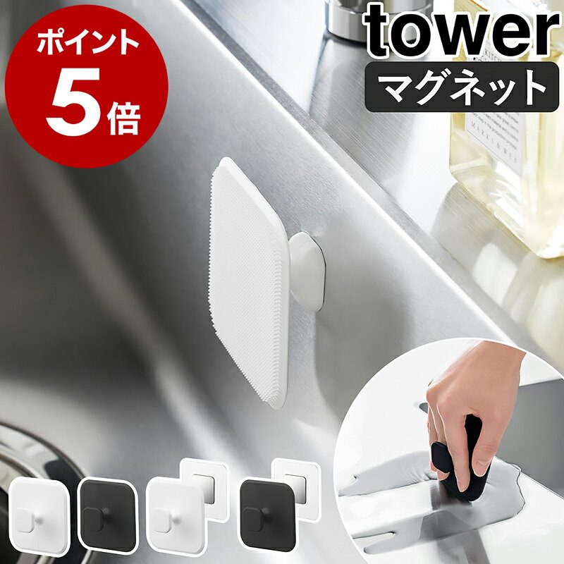 【365日出荷&当店限定特典付き】山崎実業 マグネットサニタリーシリコーンスポンジ タワー tower 公式 シリコンたわし シリコンブラシ 掃除 浴室 洗面台 バスルーム 浴槽 耐熱 マグネット用ベース ホワイト ブラック 1842 1843