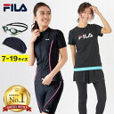 送料無料 フィットネス 水着 レディース ゴーグル付き 3点セット FILA フィラ ゴーグル セット フィットネス水着 セパレート めくれ防止 体型カバー 大きいサイズ 水泳 半袖 スイムウェア スイミング 9M 11L 13L 15LL 17LL 19LL 21LL 347280set 310203 [set]