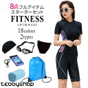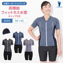 ほっそり見える! フィットネス水着 上下セット 半袖 送料無料 めくれ防止 着痩せ レディース セパレート セット キャップ付き 大きいサイズ 前開き スイムキャップ 体型カバー 水泳 競泳水着 かわいい ママ水着 プール 母の日 プレゼント ft002