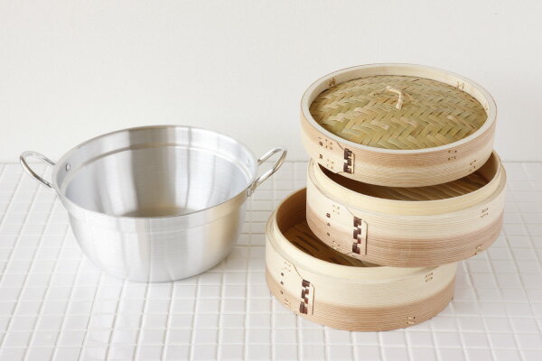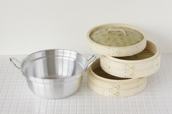 竹 中華せいろ ステンレス釘留め30cm(外径) アルミ鍋セット【アルミ鍋・せいろ本体2・ふた1】【クッキングシート10枚… 11,944円 |