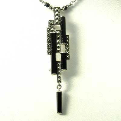 【送料無料】 碌山オニキスとマルカジットのシャープで縦長のフォルムが美しいブローチ・ペンダントトップ 202C0536-ONF 13,500円 ティーフェ |