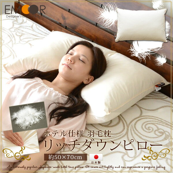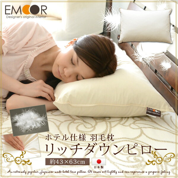 羽毛枕 リッチダウンピロー 約43×63cm ホテル仕様 日本製 羽毛まくら 羽毛マクラ うもうまくら down pillow ホテルピ… 4,490円 エムール -EMOOR 布団・家具- |