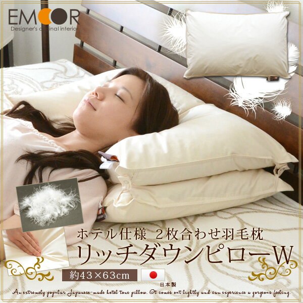 ホテル仕様 2枚重ね羽毛枕 羽毛まくら リッチダウンピローW 約43×63cm (羽毛マクラ うもうまくら down pillow ホテル… 6,490円 エムール -EMOOR 布団・家具- |