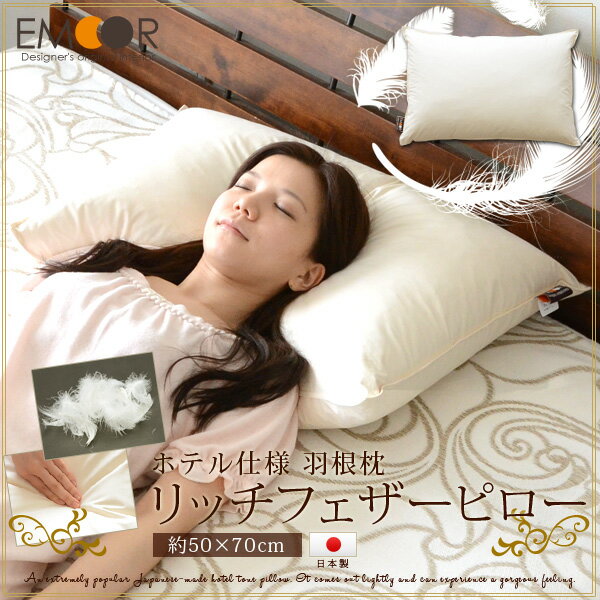 ホテル仕様 日本製 羽根枕 リッチフェザーピロー 約50×70cm (羽根まくら 羽根マクラ はねまくら feather pillow ホテ… 3,290円 エムール -EMOOR 布団・家具- |