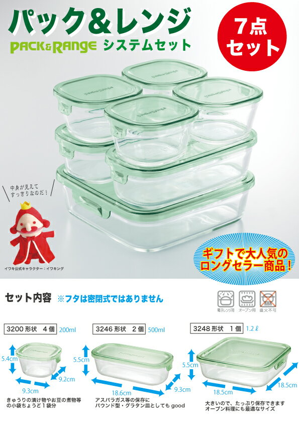 【特価3割引! 送料無料! 】iwakiパック&レンジ 7点セット耐熱ガラス ガラス 保存容器 保存※人気商品につきお届…