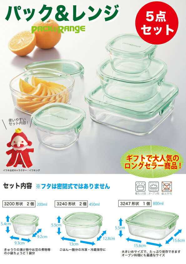 【アウトレット特価】iwaki パック&レンジ 角型5点セット耐熱ガラス ガラス保存容器※人気商品につきお届けまで時間…