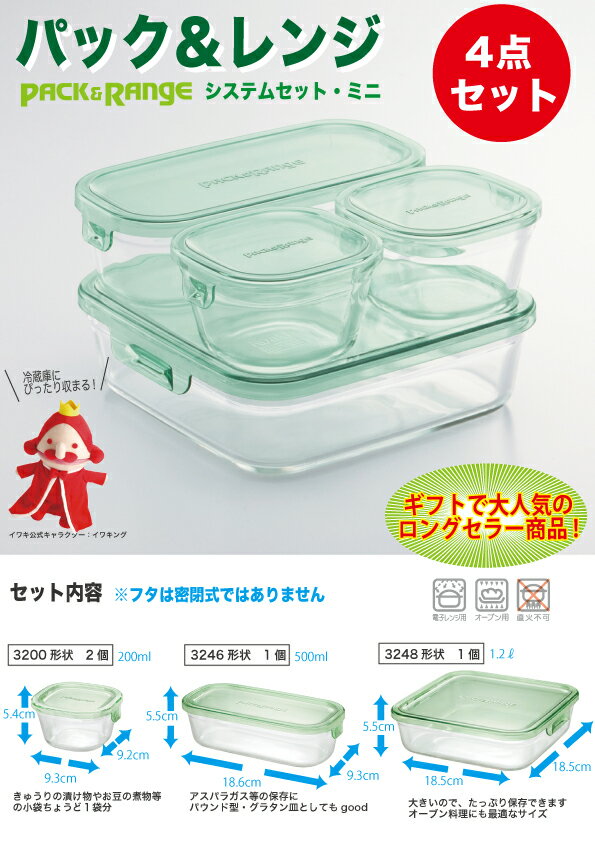 【アウトレット特価!34%OFF!】iwaki(イワキ) パック&レンジ システムセット・ミニ(グリーン)耐熱ガラス ガラス …