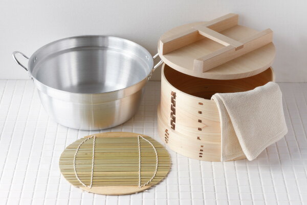 杉 和せいろ(蒸し器)4点セット24cm(外径)【アルミ鍋・せいろ本体・木ぶた・蒸し布】 【約8合】 6,912円 かごや |