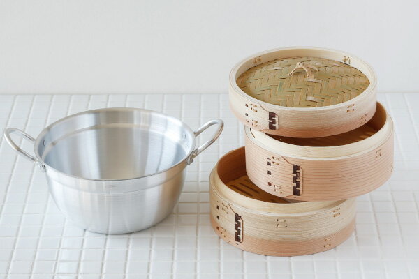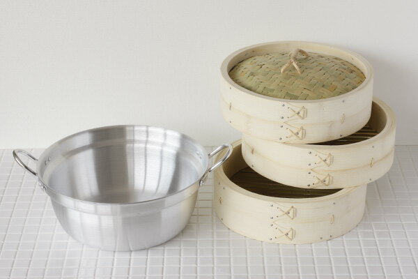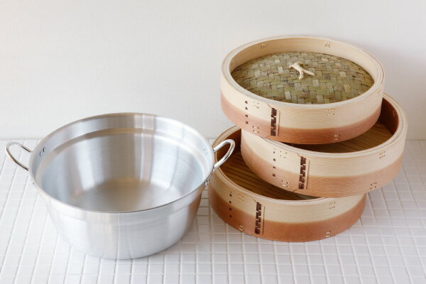 杉 中華せいろ 24cm(外径) アルミ鍋セット 【アルミ鍋・せいろ本体2・ふた1】【クッキングシート10枚付き】 8,391円 かごや |