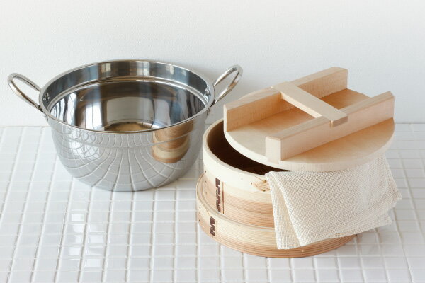 杉 和せいろ(蒸し器)4点セット21cm(外径)【IH対応ステンレス鍋・せいろ本体・木ぶた・蒸し布】 【約4合・600g】 6,804円 かごや |