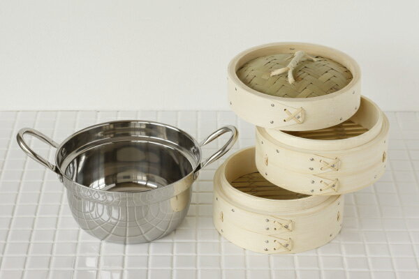 蒸し鍋、温野菜がおいしくできる蒸し器 杉蒸篭(せいろ)18cm2段鍋つきセット【中華せいろ】 4,104円 虎斑竹専門店 竹虎 |