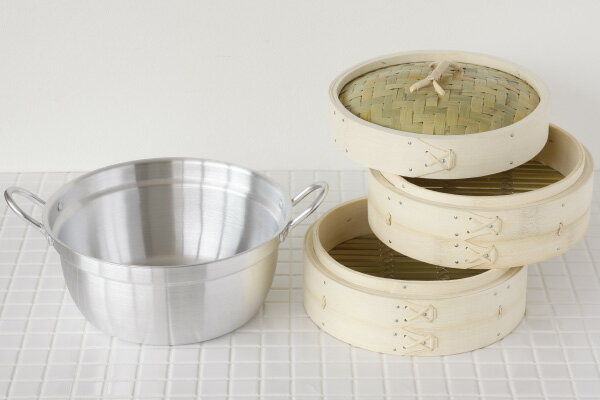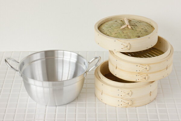 竹 中華せいろ ステンレス釘留め27cm(外径) アルミ鍋セット 【アルミ鍋・せいろ本体2・ふた1】【クッキングシート10枚… 10,735円 かごや |