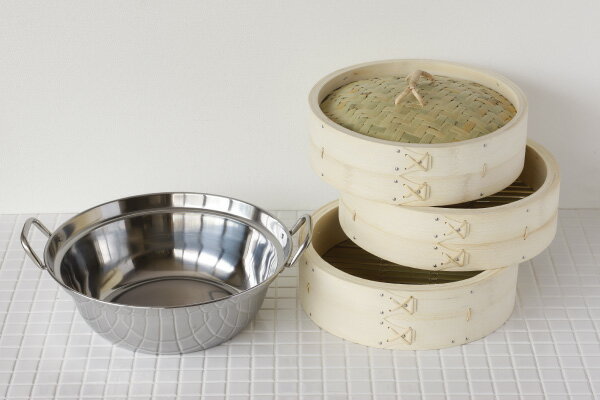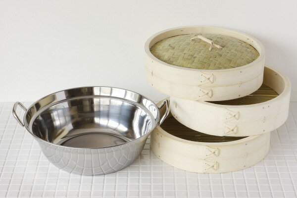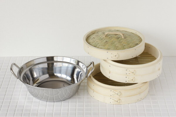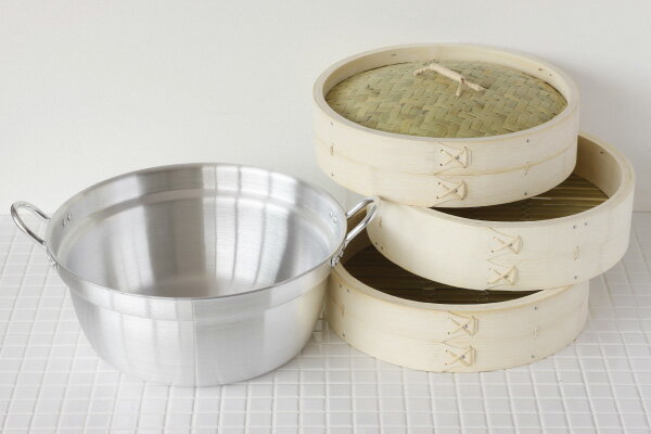 竹 中華せいろ ステンレス釘留め30cm(外径) アルミ鍋セット【アルミ鍋・せいろ本体2・ふた1】【クッキングシート10枚… 11,944円 かごや |