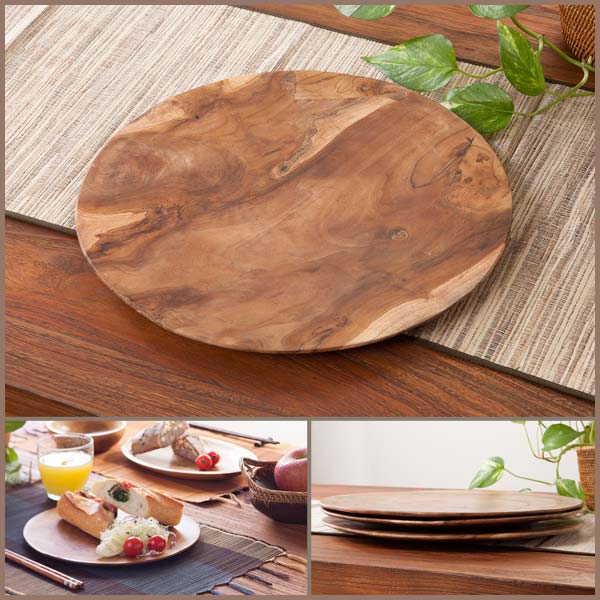 【49716】ラウンドトレイ35cm(木製の食器 木製 プレート 大皿 食器 ウッドプレート 木のお皿 チーク カフェ ナチュラル) 2,916円 アジアンインテリア ループ |