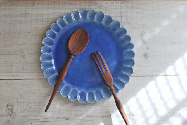 手作り食器 輪花皿 21cm ブルー 花型プレート 美濃焼 【人気食器 お花皿 美濃焼 インスタグラム】 1,350円 fucca |