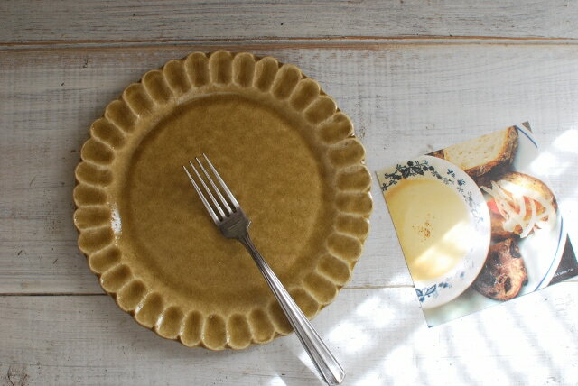 手作り食器 輪花皿 21cm カーキ 花型プレート 美濃焼 【人気食器 お花皿 美濃焼 インスタグラム】 1,350円 fucca |