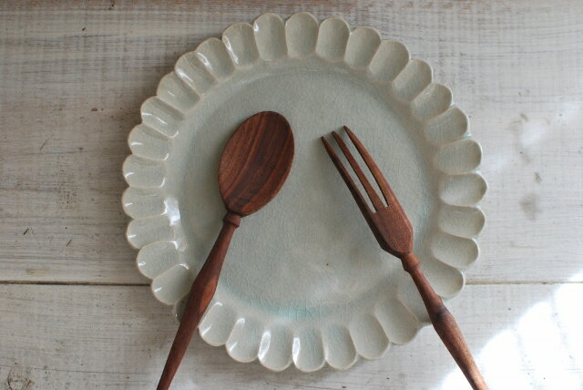 手作り食器 輪花皿 21cm ペールグリーン 花型プレート 美濃焼 【人気食器 お花皿 美濃焼 インスタグラム】 1,350円 fucca |