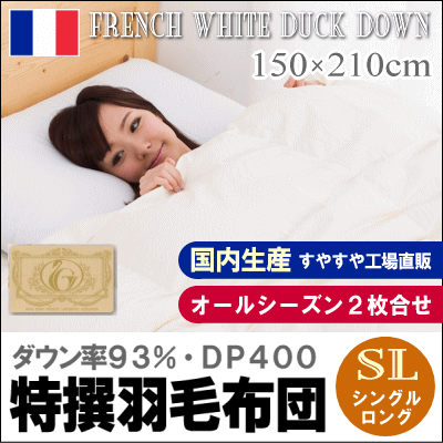 【3,000円OFFクーポン利用可】羽毛布団 シングル オールシーズン2枚合わせフランス産ホワイトダウン使用羽毛布団 シン… 39,800円 羽毛布団羽毛ファクトリーすやすや |