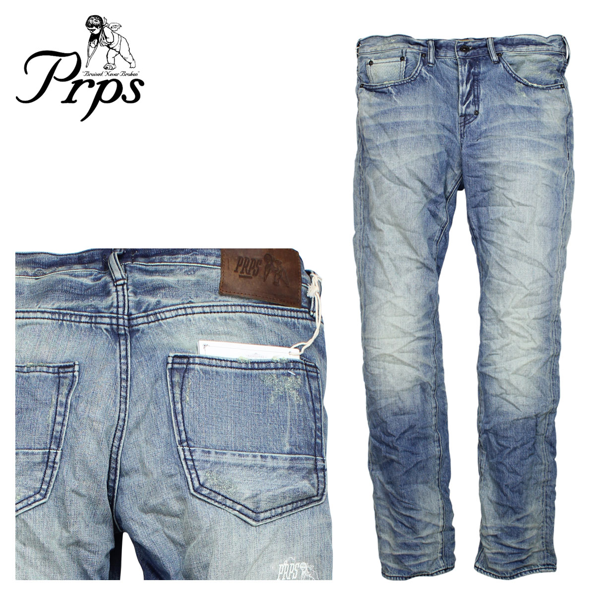 PRPS ピーアールピーエス スキニー デニム ジーンズ ミディアムブルー GREMLIN SCARRED DENIM Gパン メンズ 17,800円 スニークオンラインショップ |